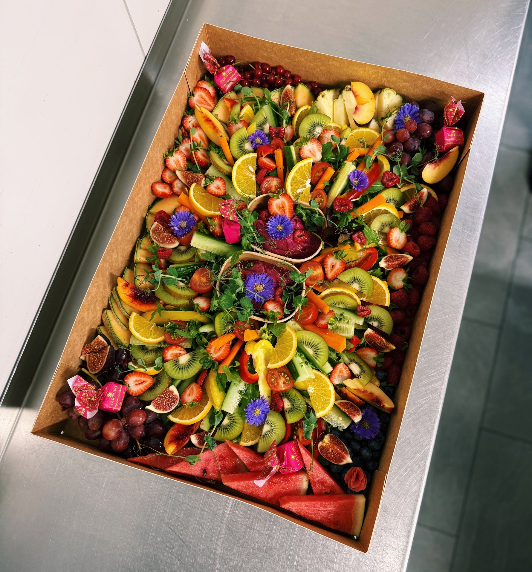 Einzelpreis proUnsere liebevoll arrangierte Crudité & Fruit Box vereint knackige Frische, aromatische Tiefe und visuelle Raffinesse in einem harmonischen Ensemble.