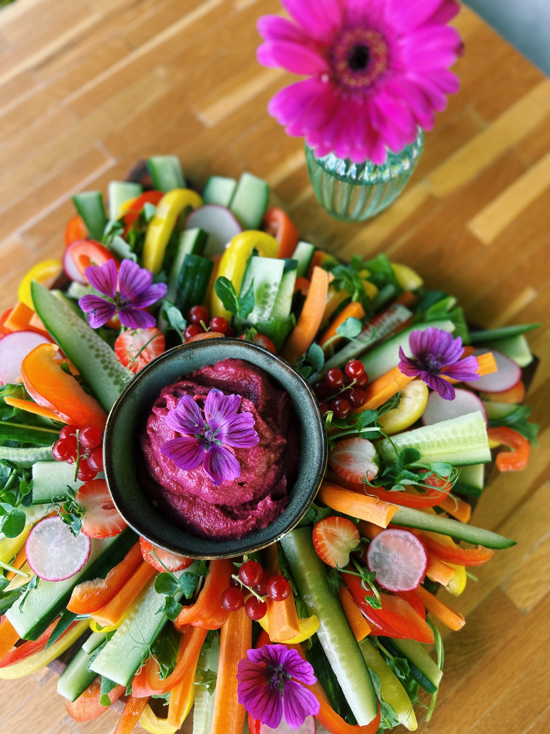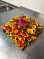 Einzelpreis proTauche ein in die Welt des stilvollen Snacking mit unserem kunstvoll arrangierten Crudité-Platter. Dieses farbenfrohe Grazing Board vereint knackiges Gemüse mit einem veganen Dip und ist ideal für besondere Anlässe, gesellige Abende oder einfach als gesunde Versuchung zwischendurch.