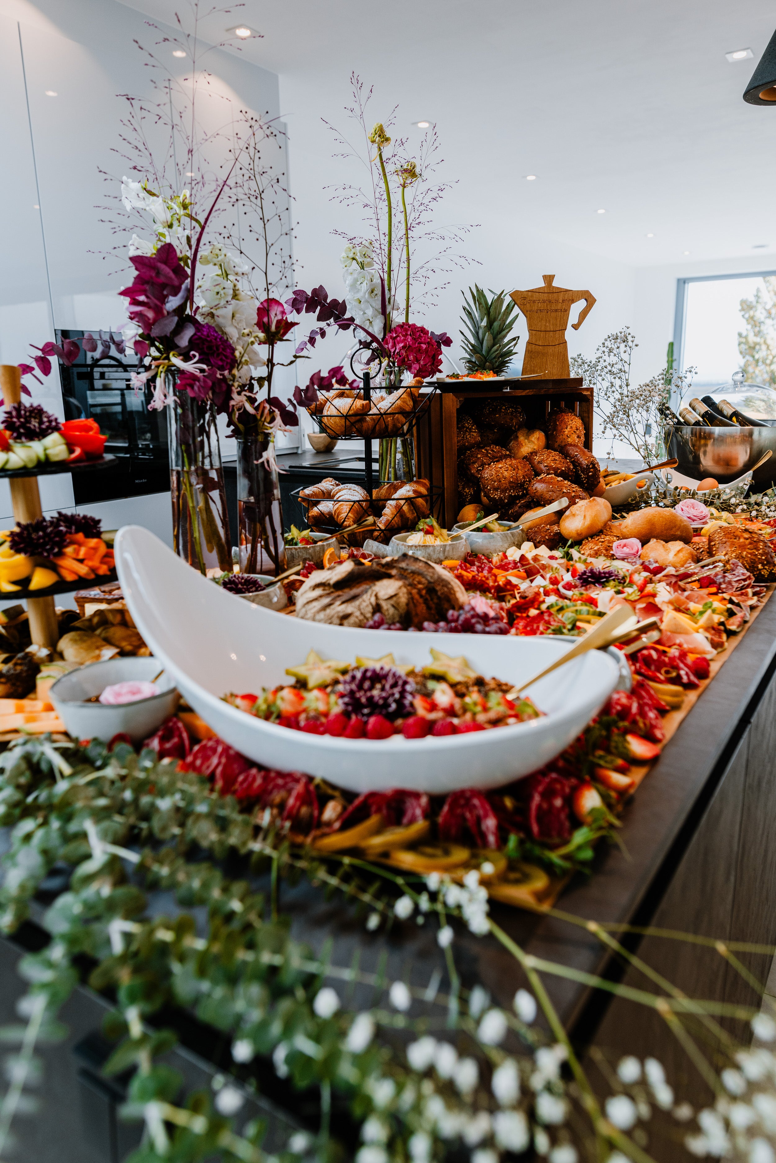 Fotos: Beispielfotos von Kunden-Bookings (Anlässe: Hochzeit (Foto 1) und Geburtstage (Fotos 2-4)Grazing Table "Brunch Style"