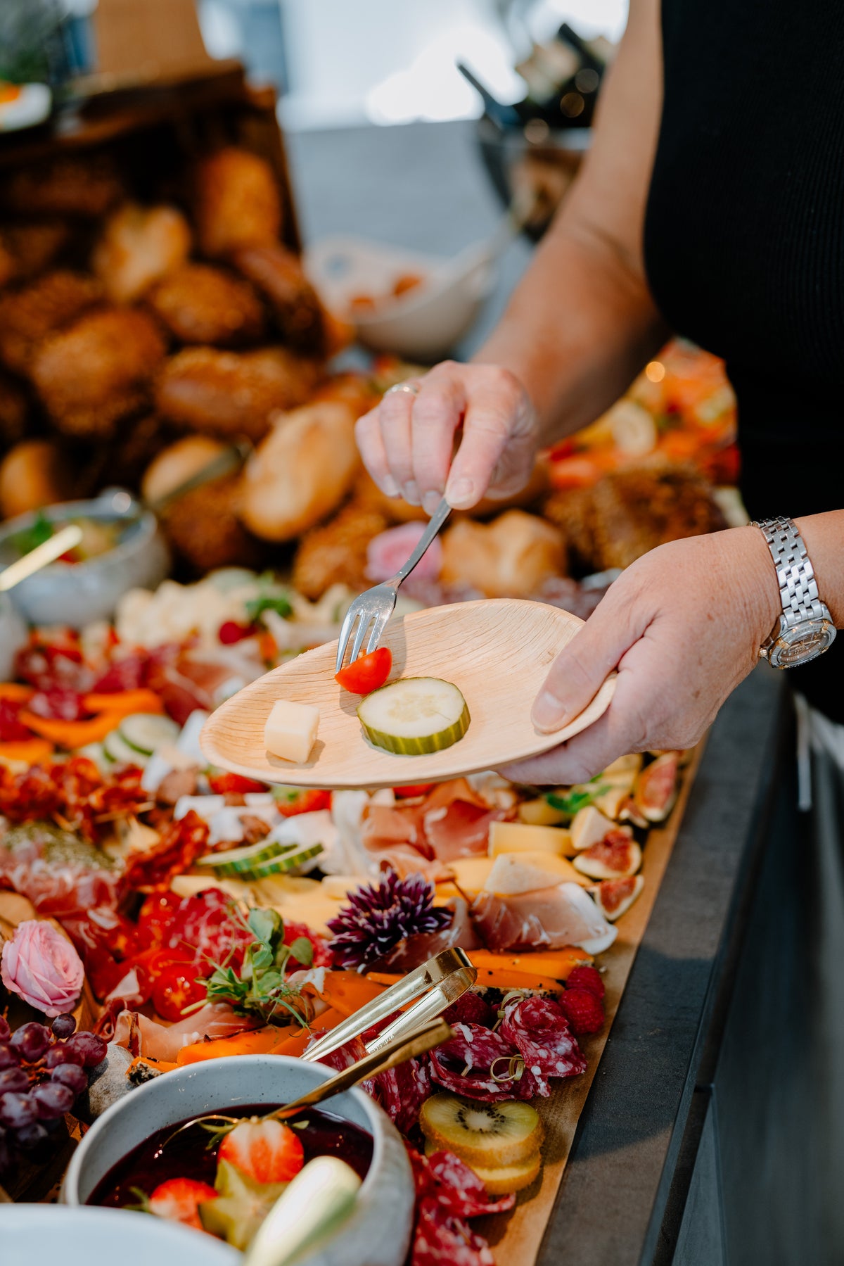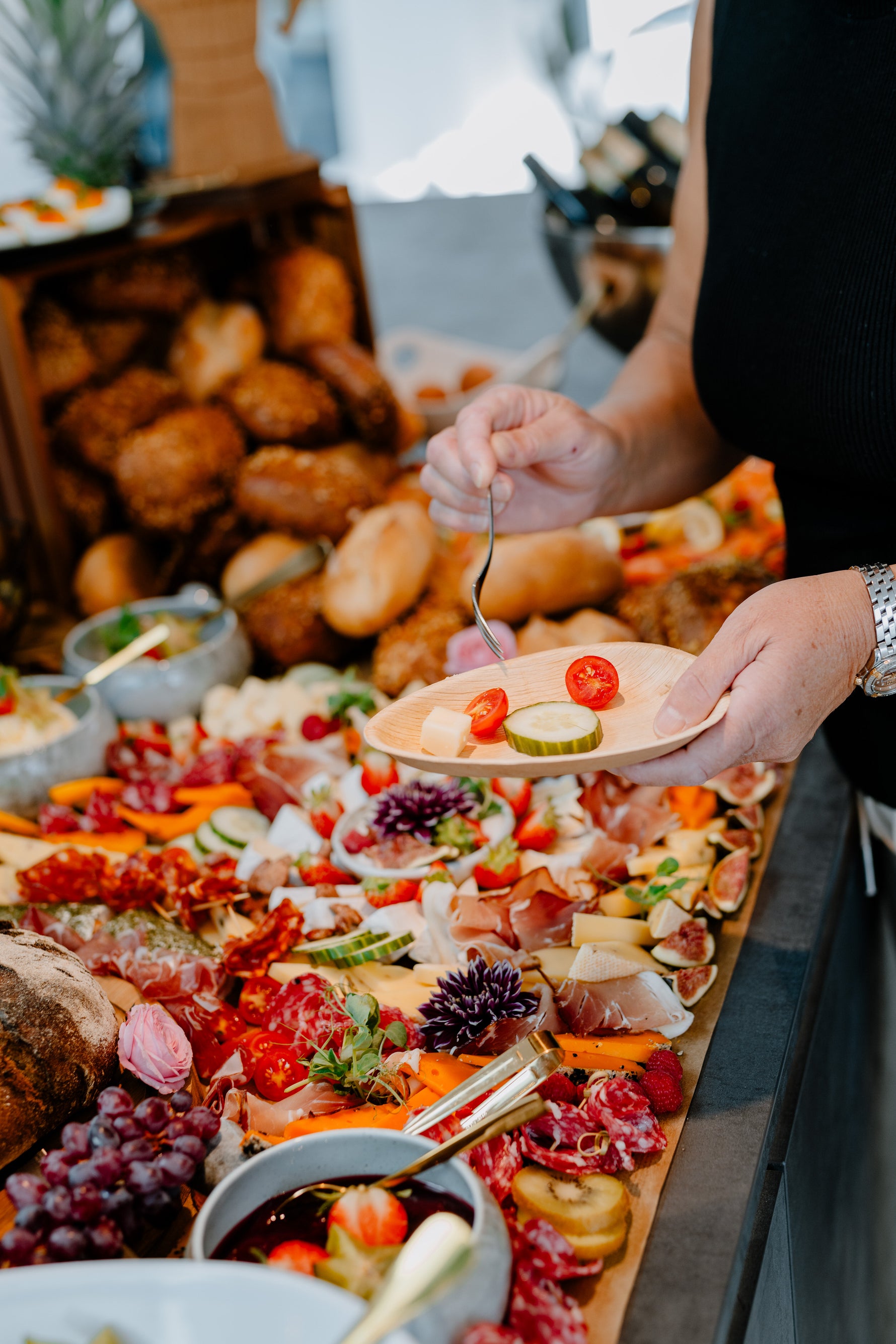 Besonders bei unseren Grazing Tables investieren wir pro Auftrag zwischen 8 und 10 Arbeitsstunden – von der sorgfältigen Planung bis zur kunstvollen Umsetzung.