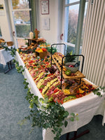 Vor Ort präsentiert unser Team eine kunstvoll arrangierte Auswahl feinster Käse- und Wurstspezialitäten, begleitet von frischen Früchten, edlen Crackern und ausgewählten Delikatessen – stilvoll inszeniert auf einem dekorativen Wagen, mit integrierter Kühlfunktion, der sich harmonisch in dein Eventambiente einfügt.